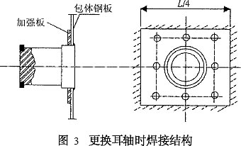 針對(duì)更換耳軸的方案,以剪應(yīng)力校核耳軸焊縫強(qiáng)度